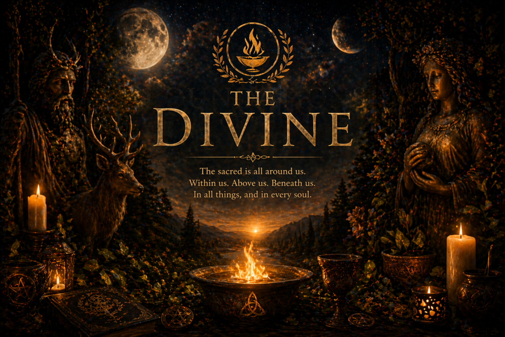 The Open Hearth Path recognizes that the Divine can be experienced in many different forms. Some may find connection through Gods and Goddesses, some through nature, ancestors, spirits, or sacred energies, and others through the quiet voice within themselves. There is no single way to understand the Divine, and no single image or name that can fully contain it.