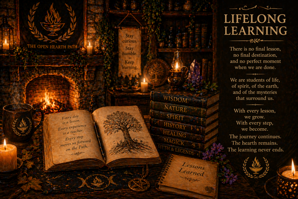 The Open Hearth Path teaches that spiritual growth is a lifelong journey. There is no final destination where a person suddenly has all the answers, masters every skill, or becomes “finished.” No matter how long you have walked the Path, there will always be more to discover, more to question, and more to learn.